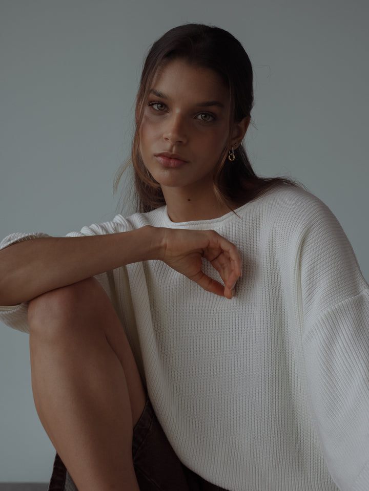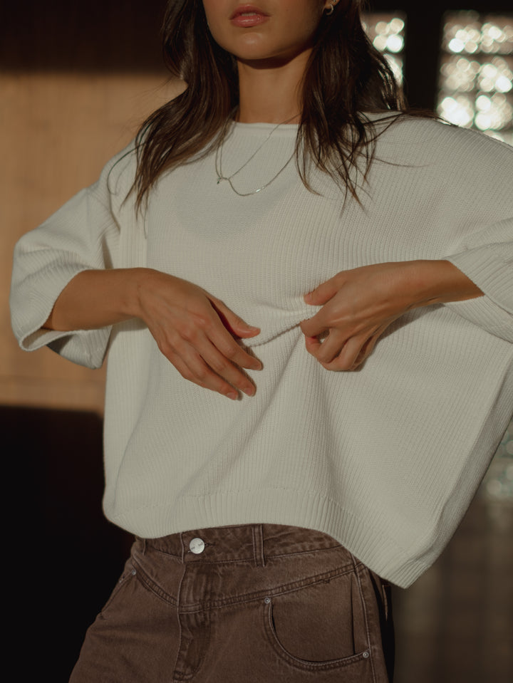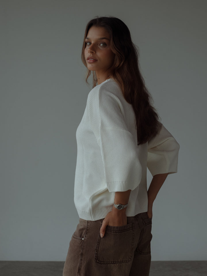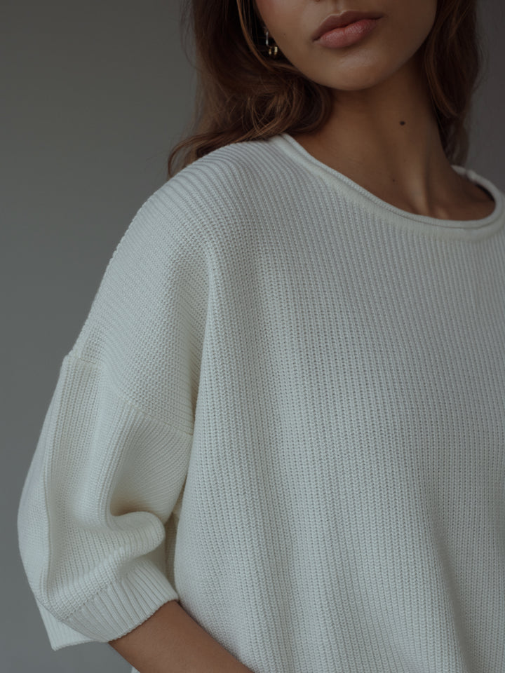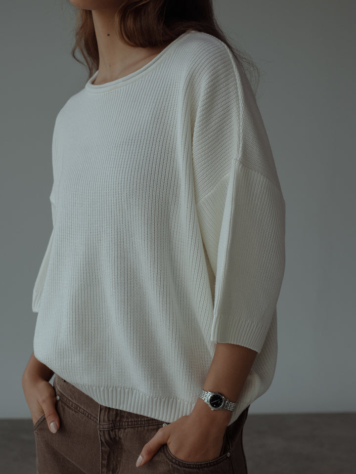 BAGGY KNIT T-SHIRT - SOFT WHITE