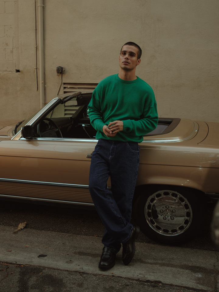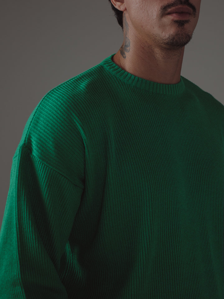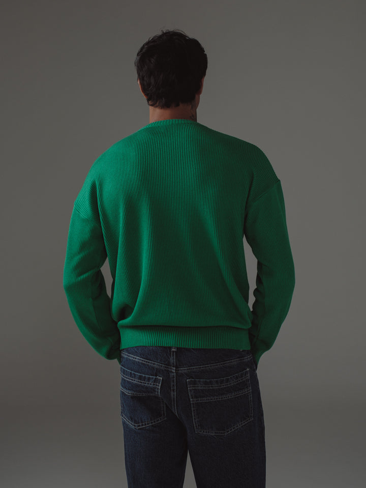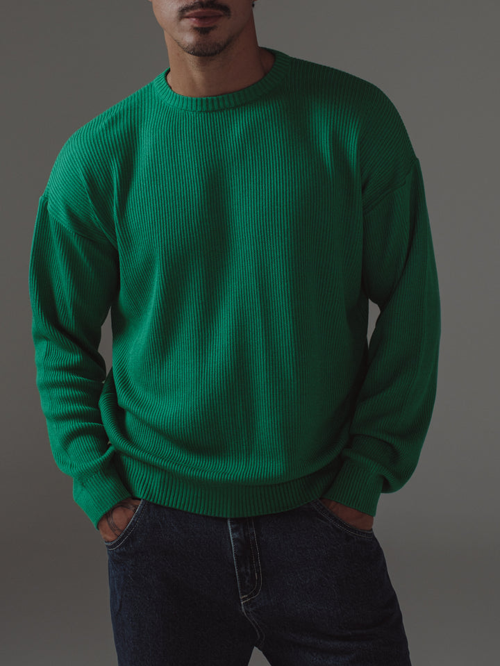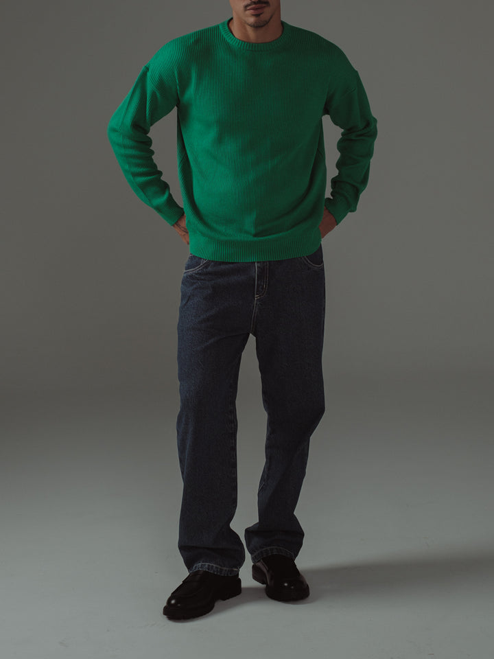 BASIC TEXTURE KNIT SWEATER - BRIGHT GREEN