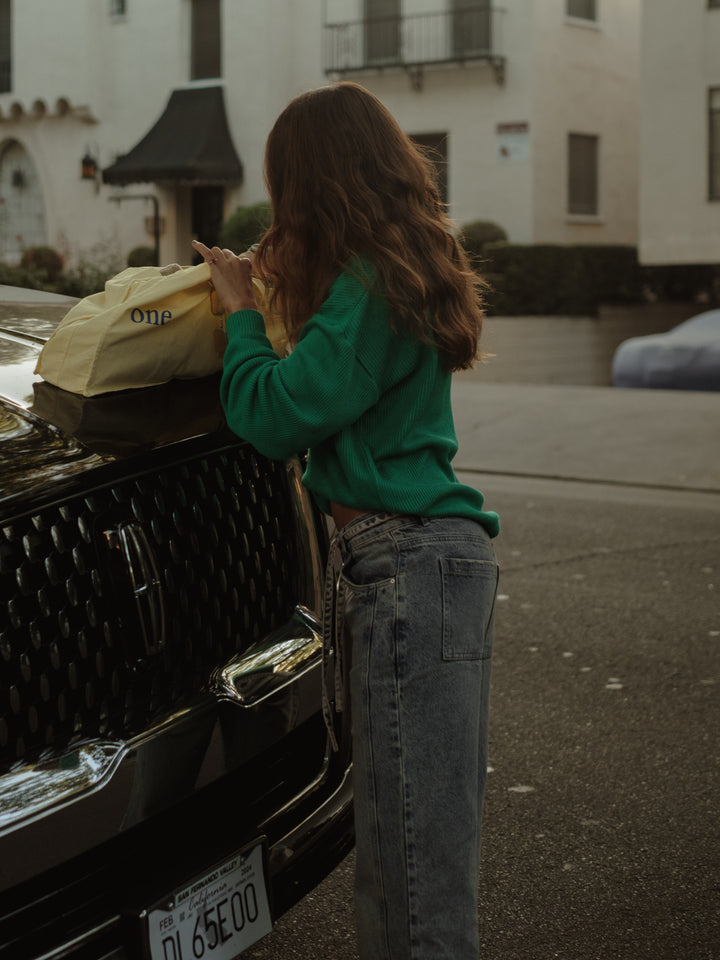 BASIC TEXTURE KNIT SWEATER - BRIGHT GREEN