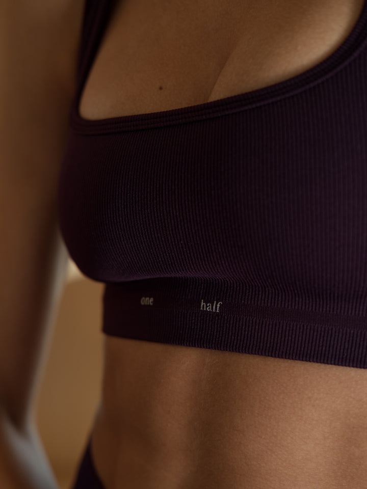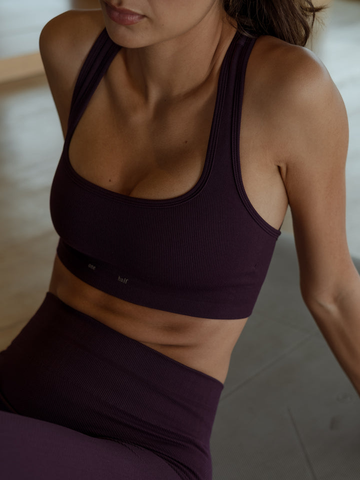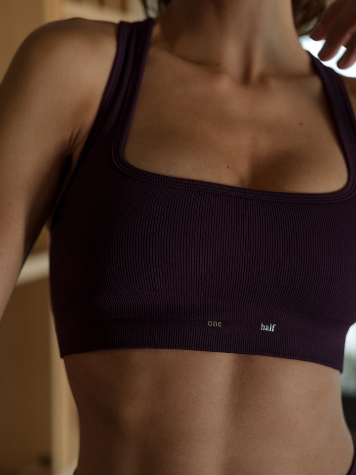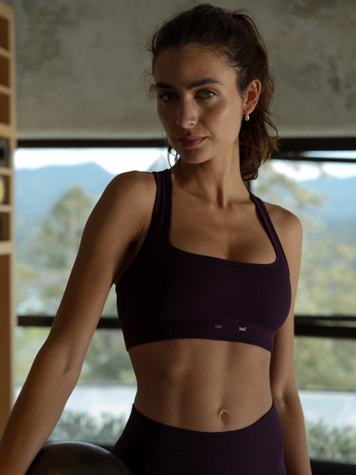 Step to it. Nuevo top deportivo color morado diseñado con escote cuadrado y tiras cruzadas posteriores, una pieza ideal para tus entrenamientos deportivos. Match this piece up con nuestros leggings deportivos para mujer.
