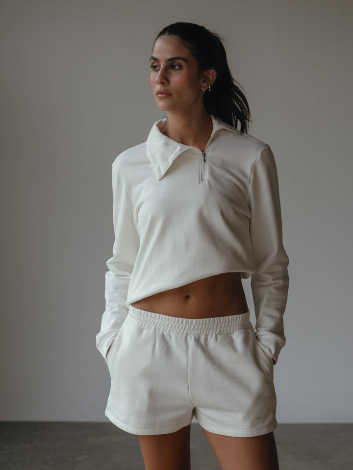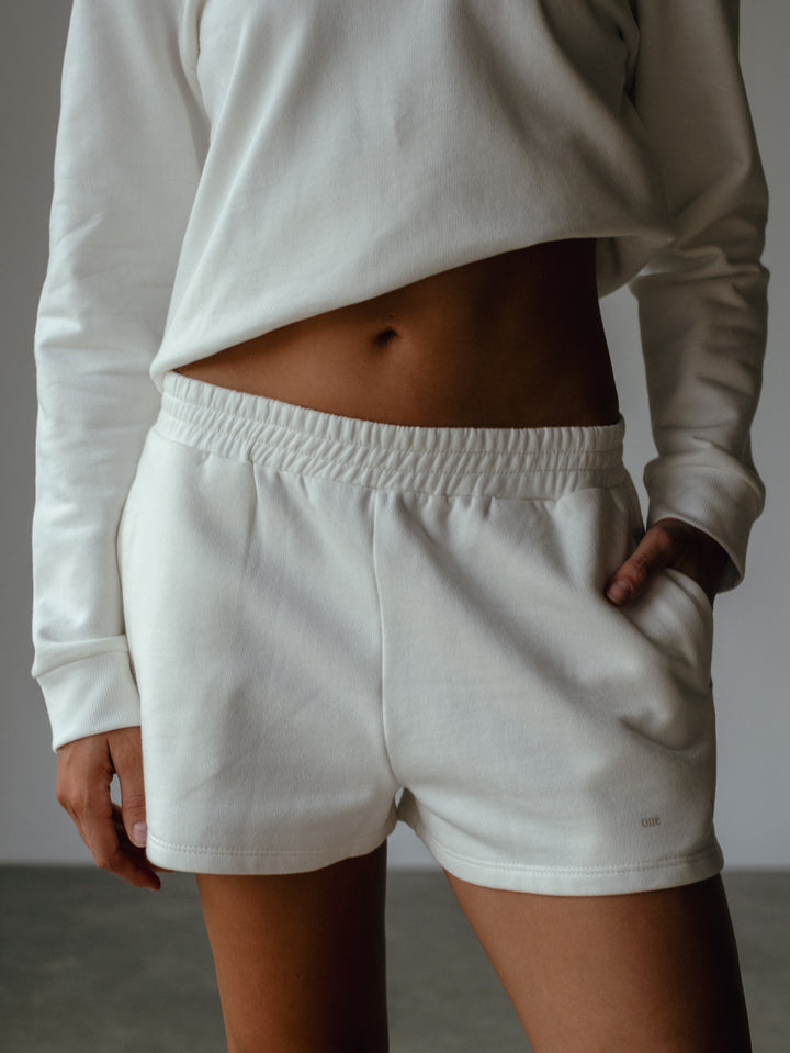 The bassic shape you must have. Nuevo short color crudo, una prenda diseñada con pretina enresortada, bolsillos laterales y "One Half" estampado. Match it up con nuestros tops deportivos.