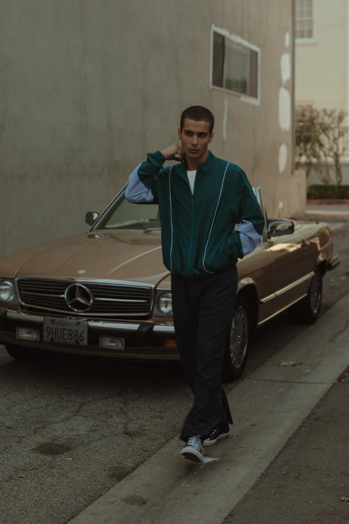 COLOUR BLOCKING JACKET - GREEN & BABY BLUE