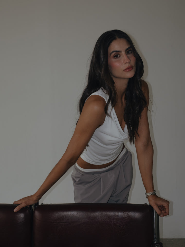 This is a sleeveless top! Nuevo top color crudo, una pieza manga sisa con escote frontal en "U" ideal para crear tus casual looks. Match this crop up con tus jeans y pantalones favoritos.