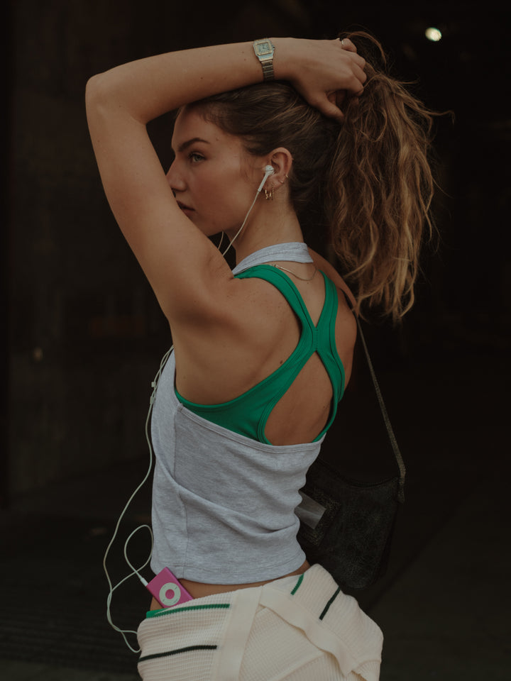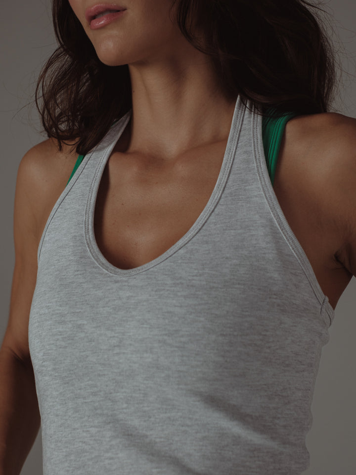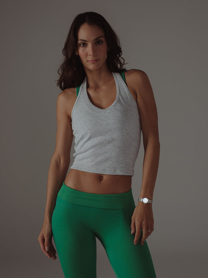 HALTER RIB TOP - CREAMY GRAY