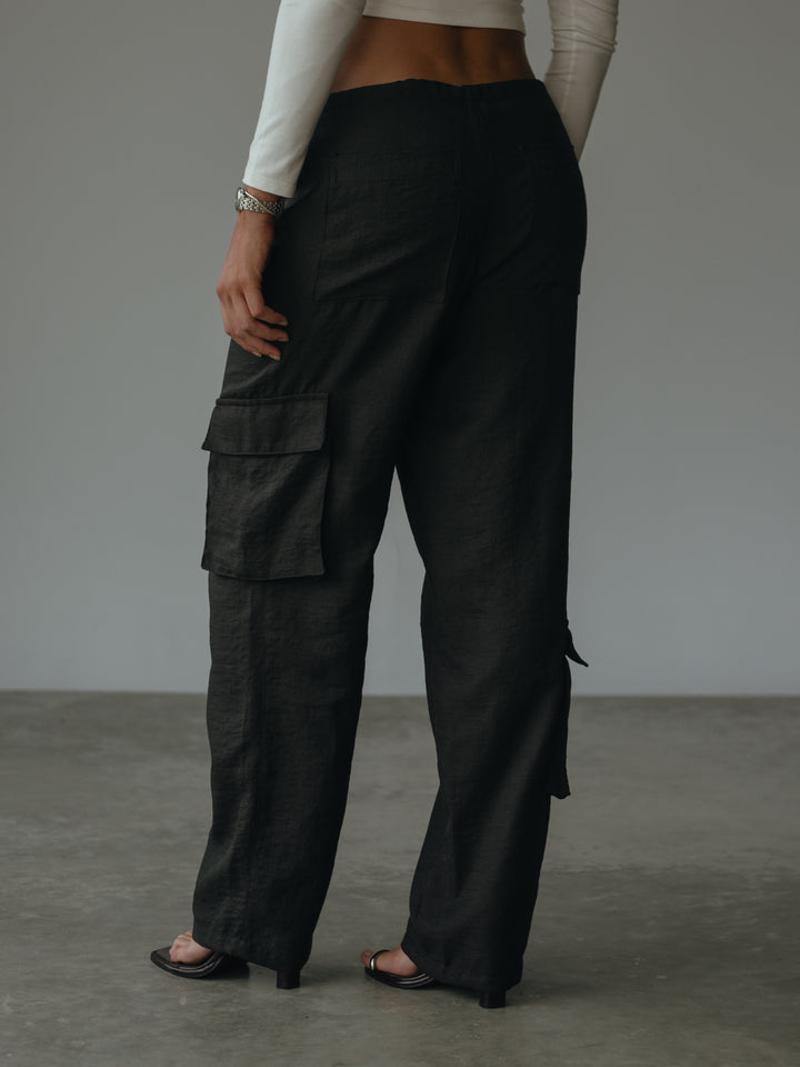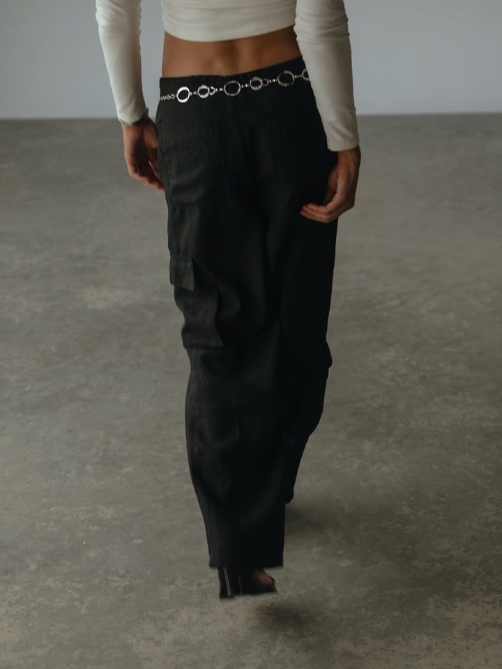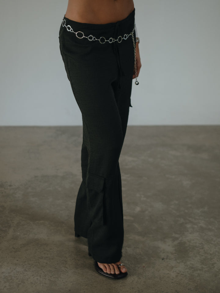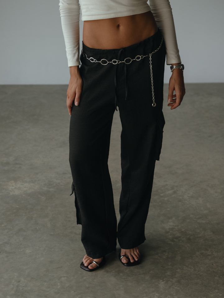 Comfort & cool, así es nuestro nuevo pantalón low rise color negro, diseñado con bolsillos asimétricos en los laterales que hacen de este tu pantalón aesthetic favorito. Ideal para usar con nuestros crop tops para mujer.