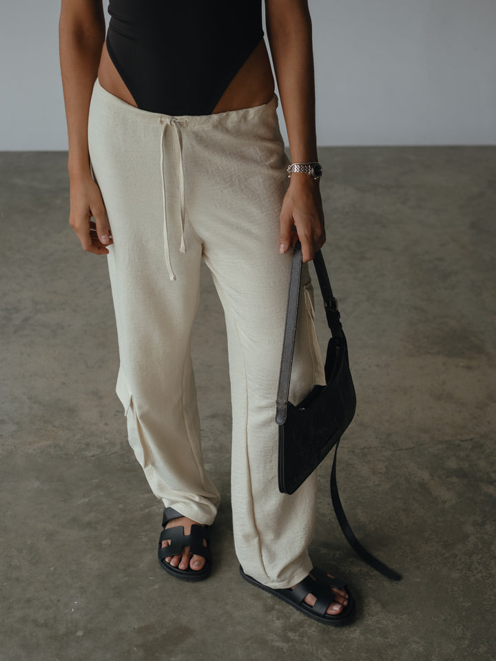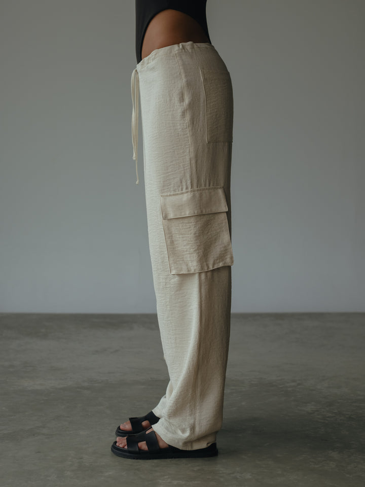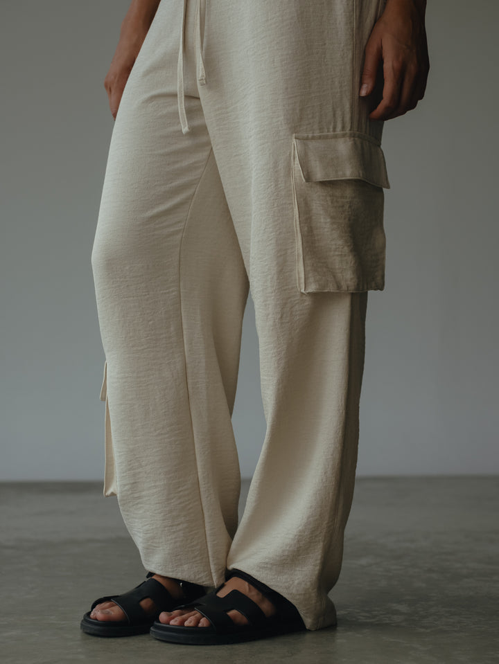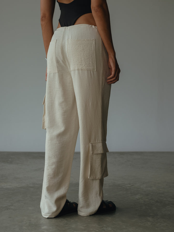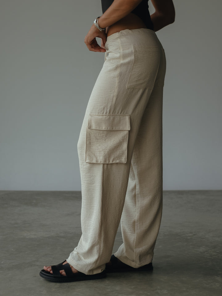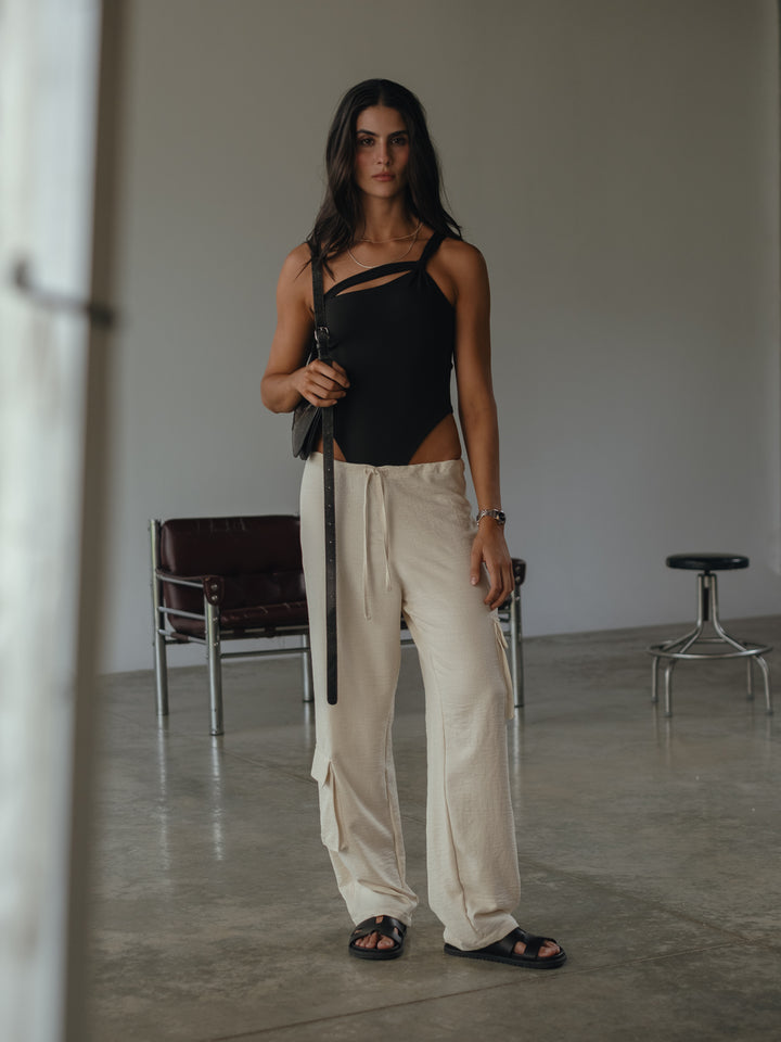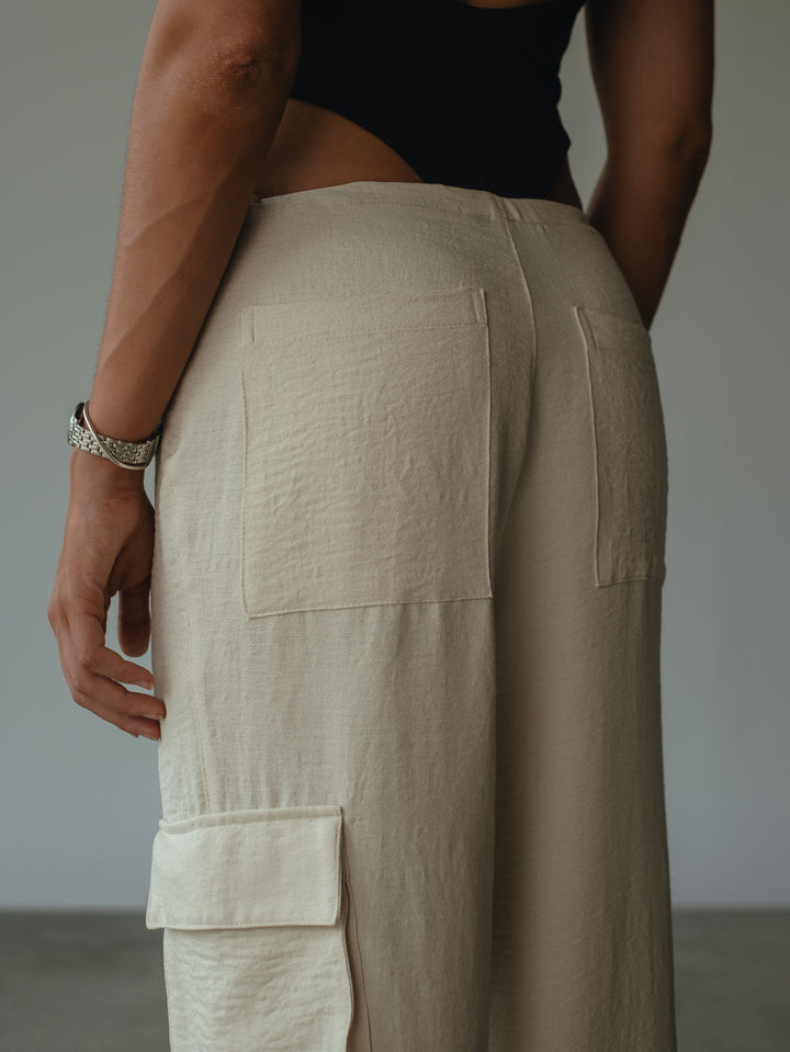 Comfort & cool, así es nuestro nuevo pantalón low rise color arena, diseñado con bolsillos asimétricos en los laterales que hacen de este tu pantalón aesthetic favorito. Ideal para usar con nuestros crop tops para mujer.