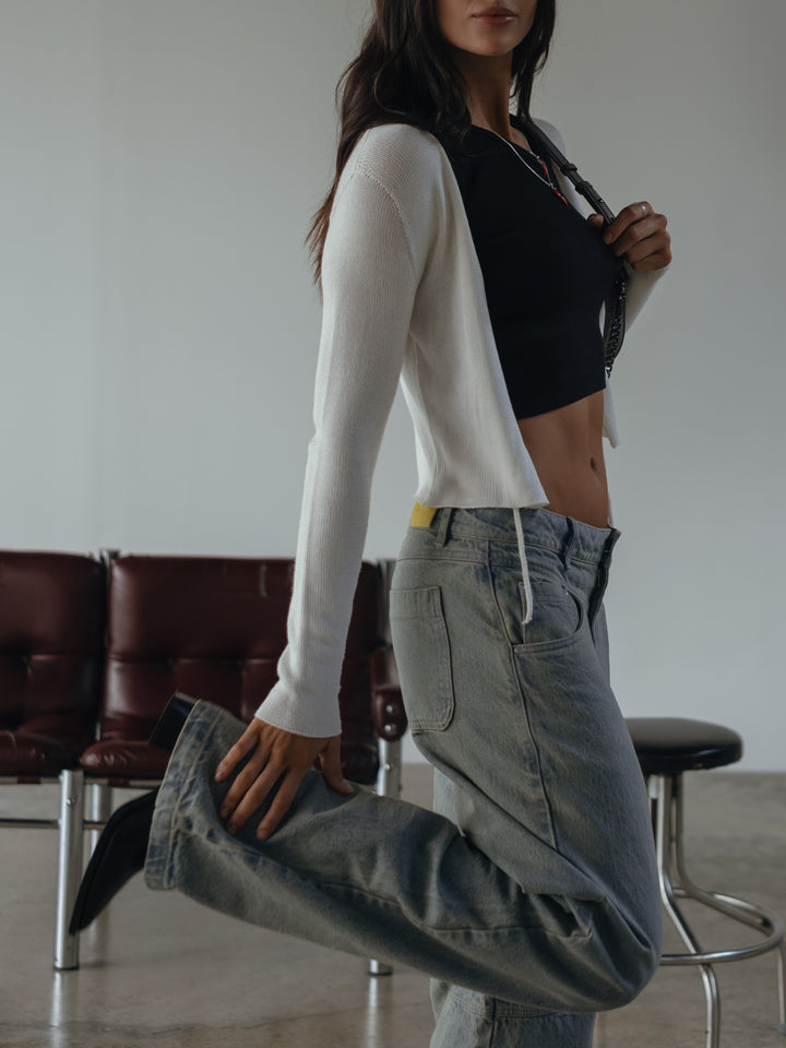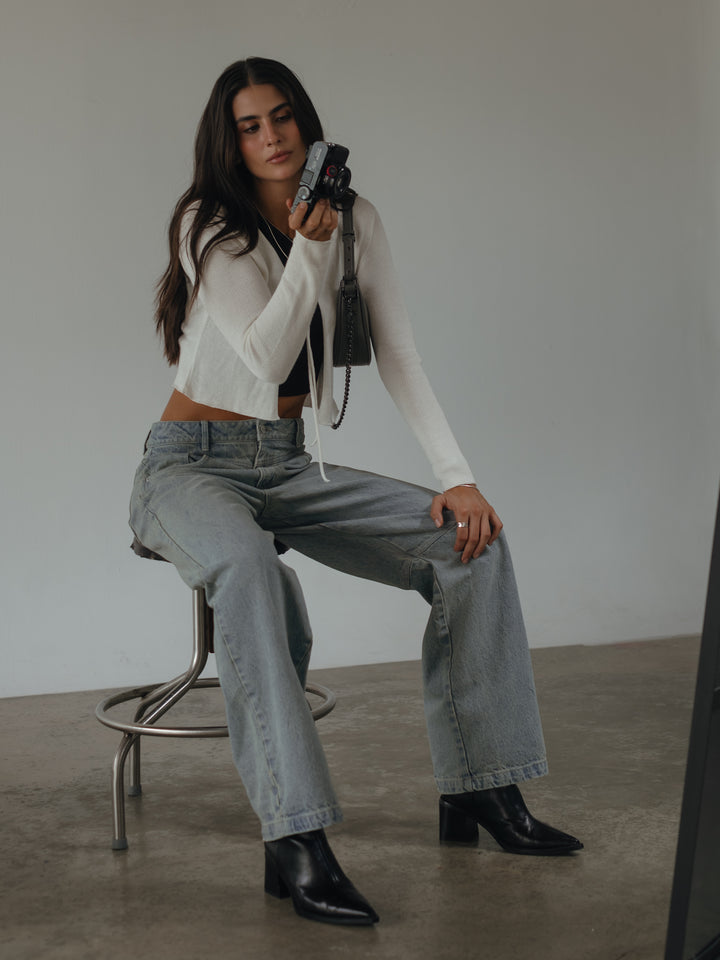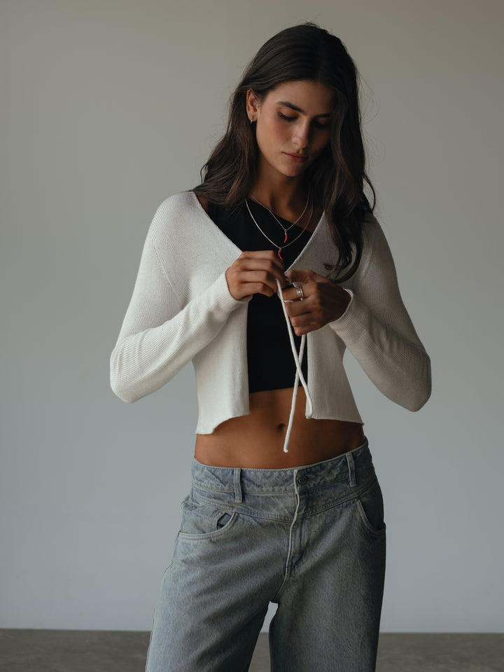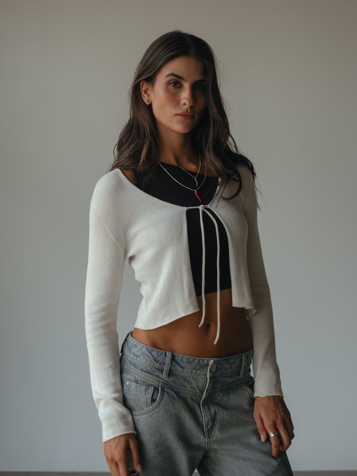 LONG SLEEVE UP SWEATER - SOFT WHITE