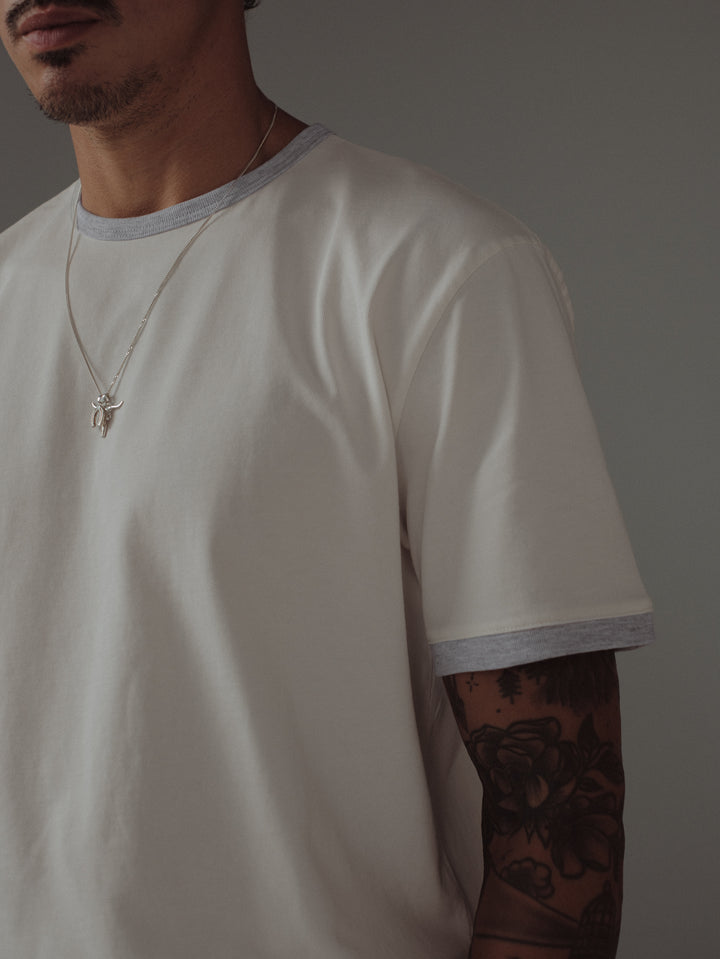 MEN BASIC CONTRAST T-SHIRT - SOFT WHITE & GRAY