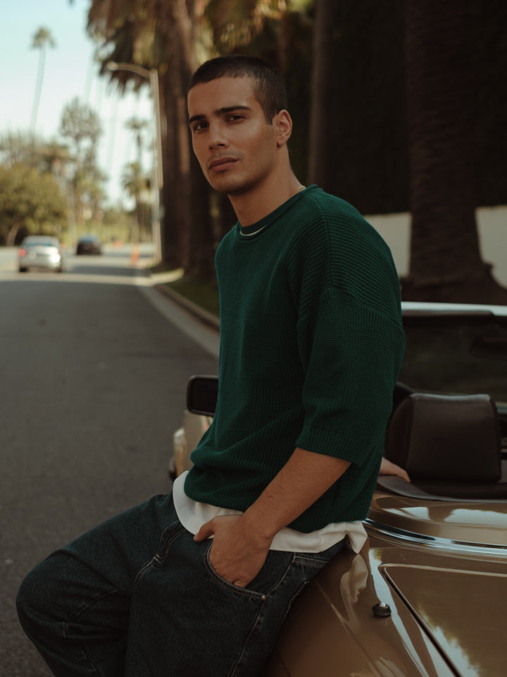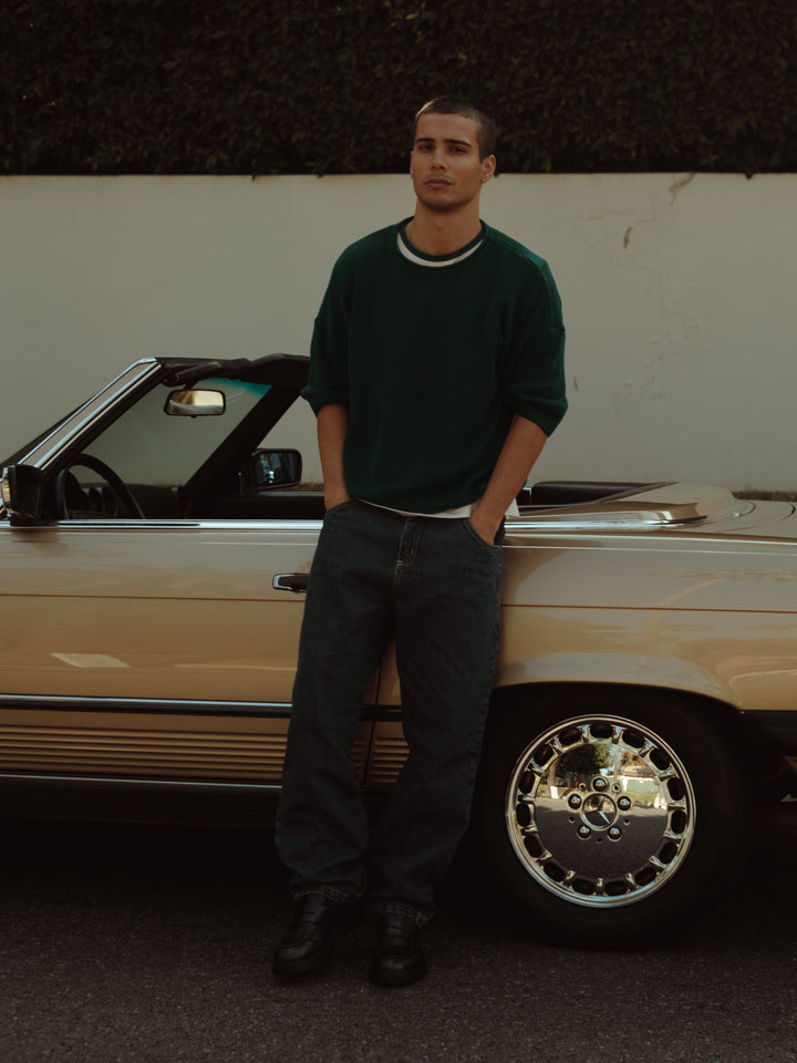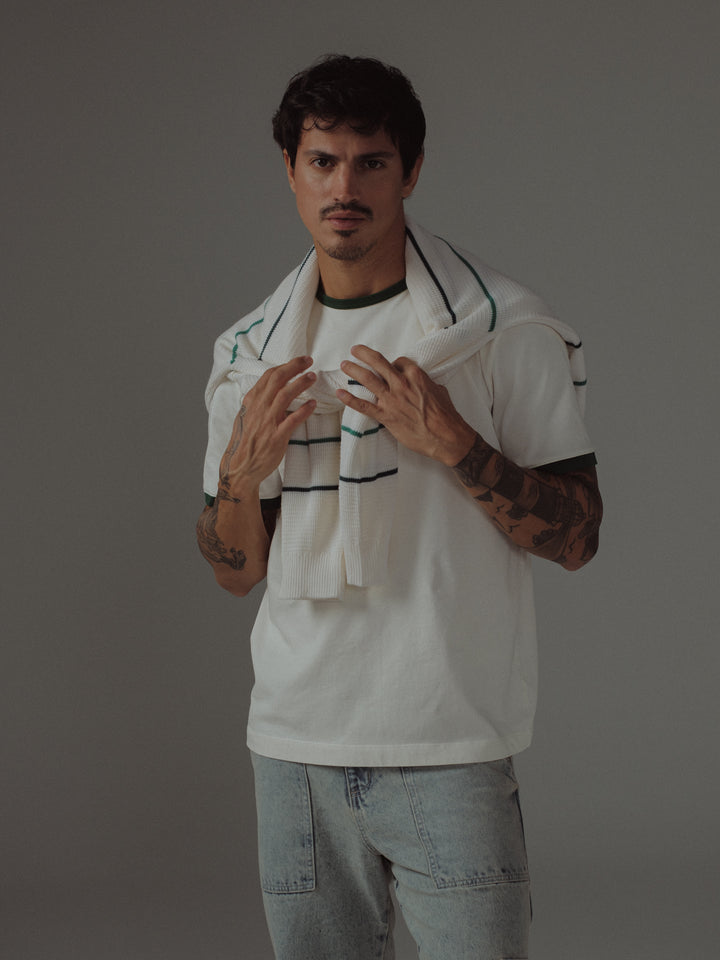 MEN BASIC CONTRAST T-SHIRT - SOFT WHITE & GREEN