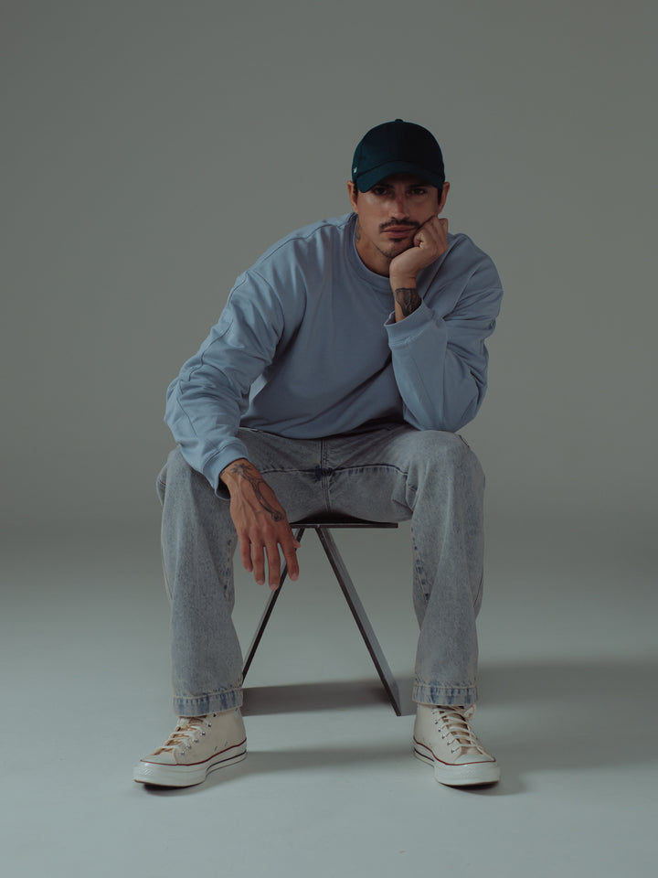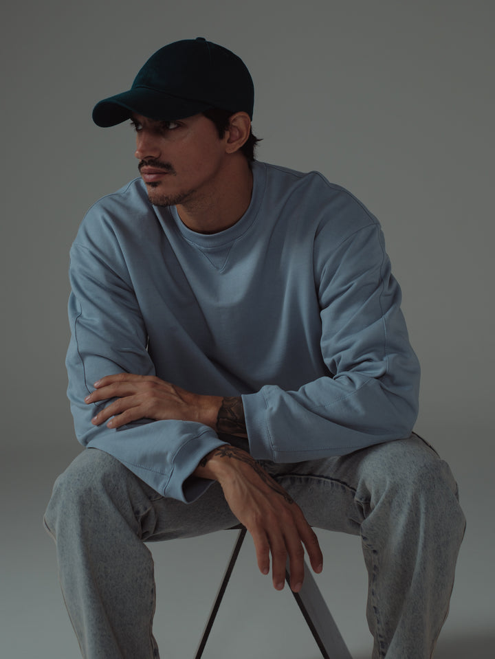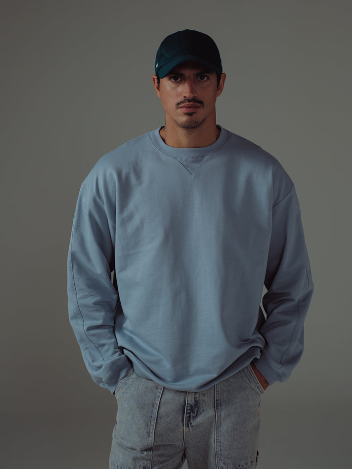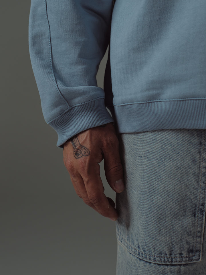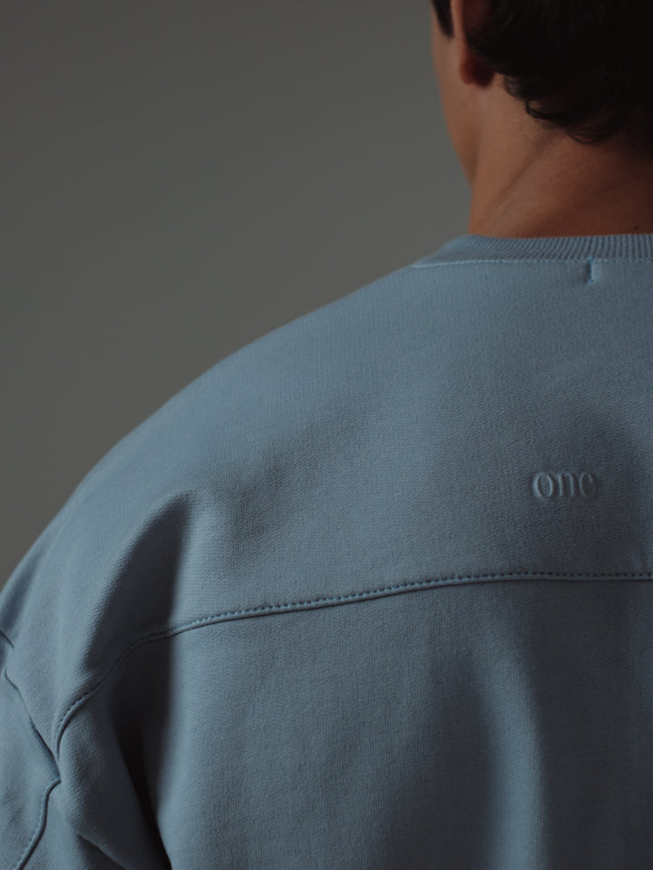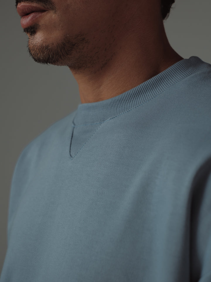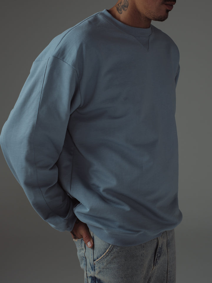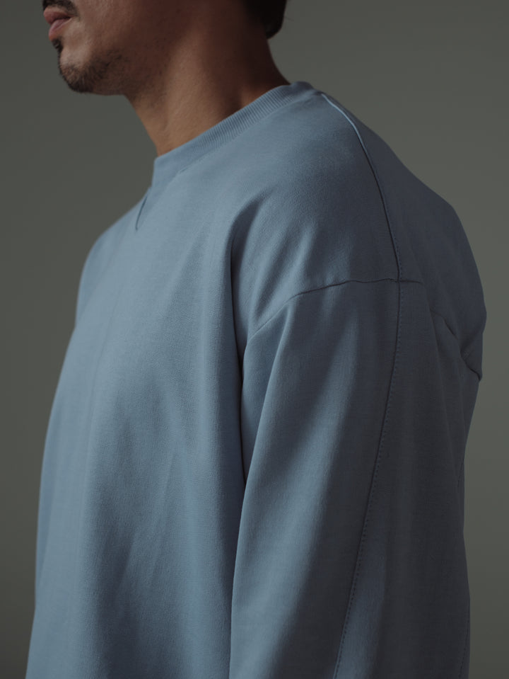 ONE HALF BOXY CREWNECK - DUSTY BLUE