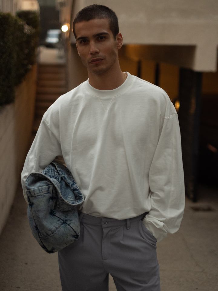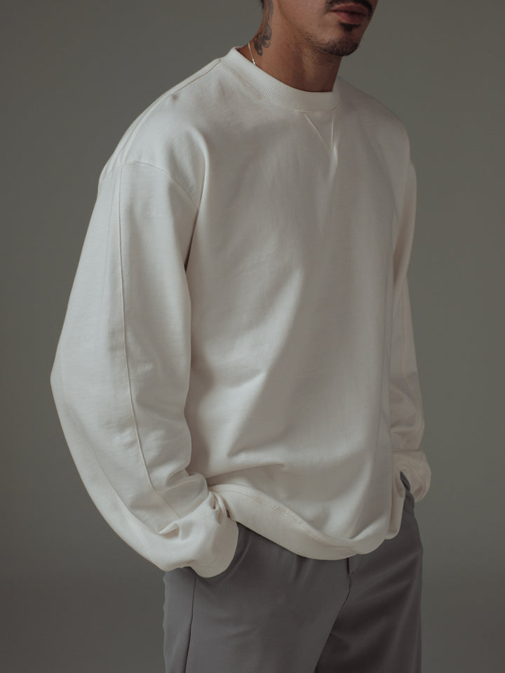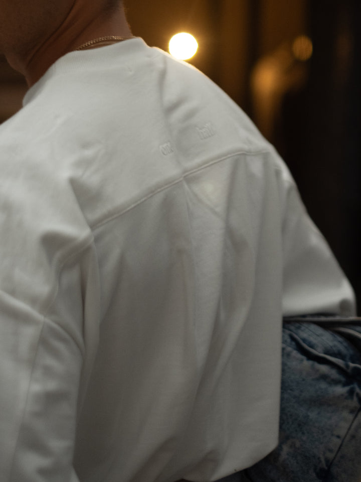 ONE HALF BOXY CREWNECK - SOFT WHITE