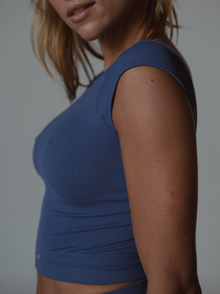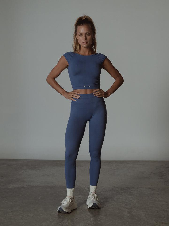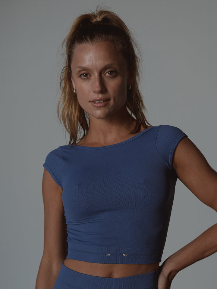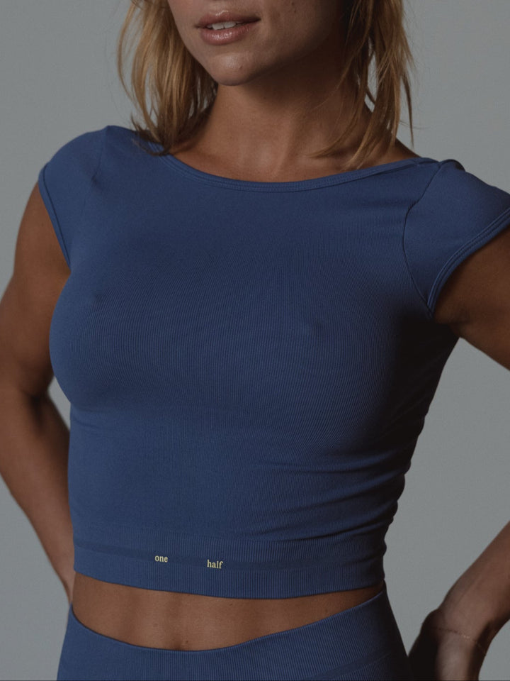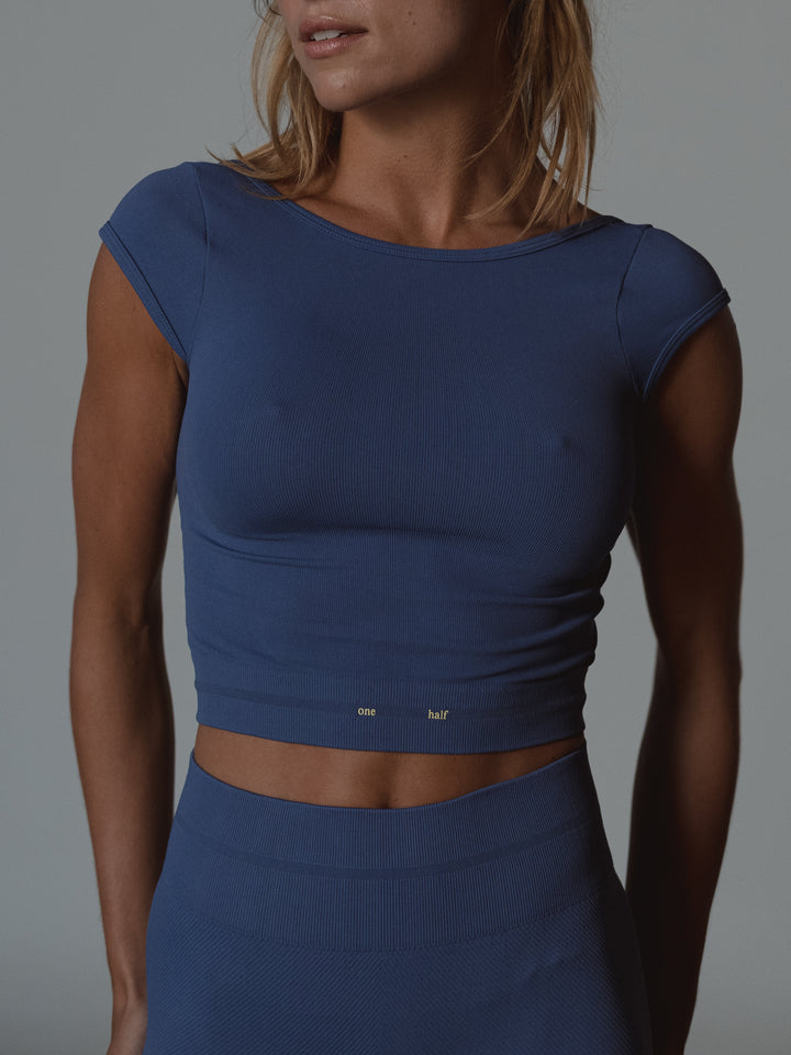 SHORT SLEEVE SEAMLESS TOP - INDIGO
