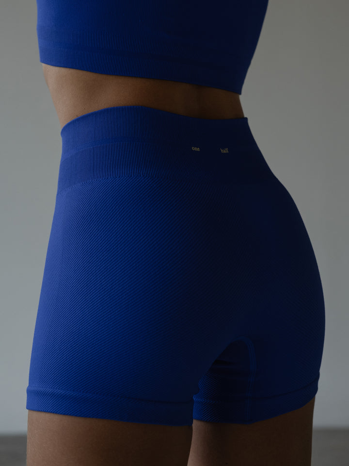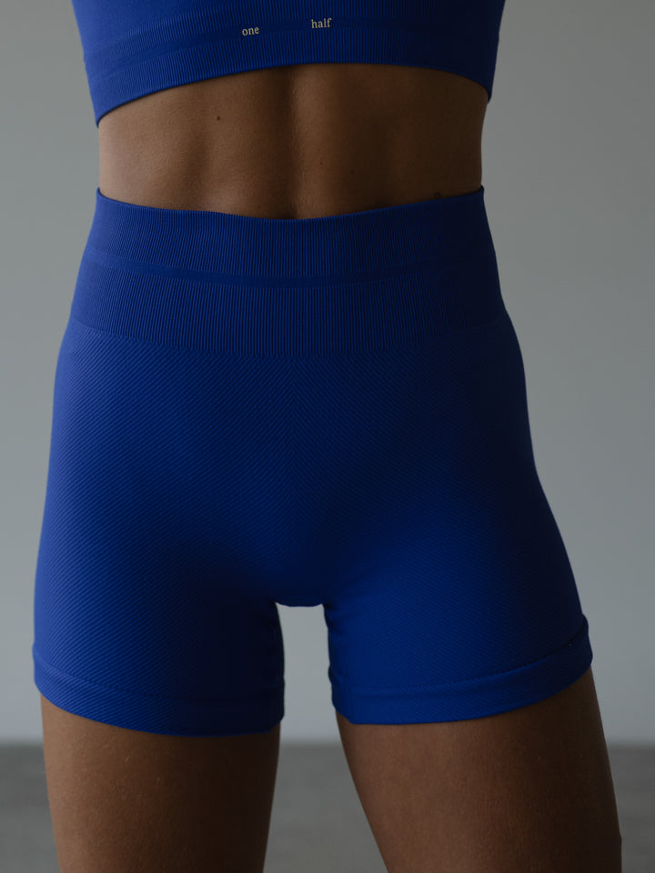 Elevate the way you move con nuestros nuevos shorts deportivos color azul, una pieza diseñada en tejido con textura y pretina acanalada. Complete your sporty look con nuestros tops deportivos.